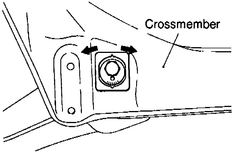 Toe is adjusted by turning the toe control arm mounting bolt to the left or right in equal amounts. Turning the left-hand bolt clockwise adjusts in the toe-out direction. Turning the right-hand bolt clockwise adjusts in the toe-in direction. Toe adjustments are made in graduations of 0.05 inch.