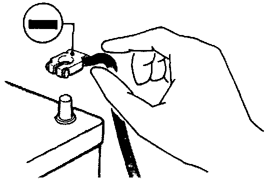 When checking or servicing does not require power from the on-vehicle battery, be sure to disconnect the cable from the battery (-) terminal. This is to prevent problems that could be caused by shorting of the circuit. Disconnect the (-) terminal first and reconnect it last.