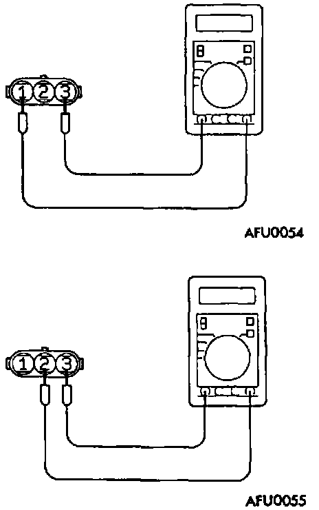 2. Measure the resistance between the throttle position sensor side connector terminal 1 and terminal 3.