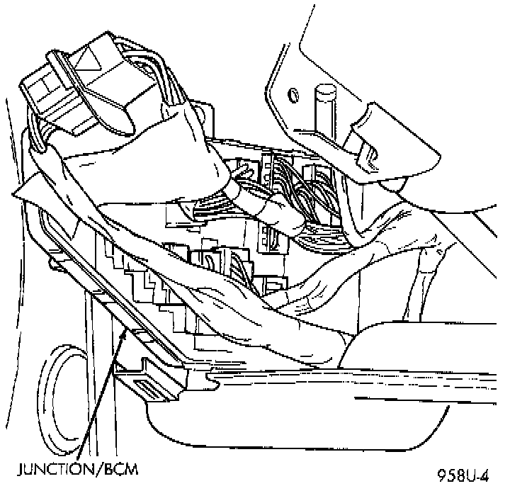 The Junction Block and Body Control Module (BCM) are attached to each other. After removal they can be separated. Junction Block and Body Control Module assemblies are located on the driver's side of the vehicle.