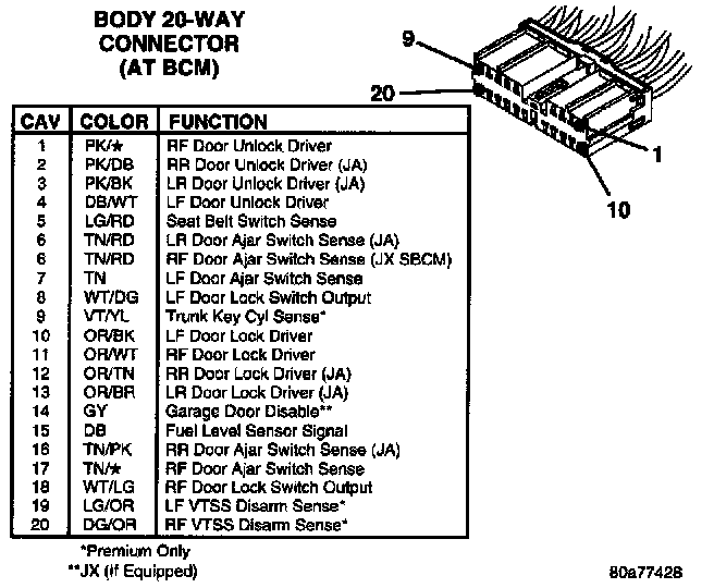 Body 20 Way Connector (At BCM):