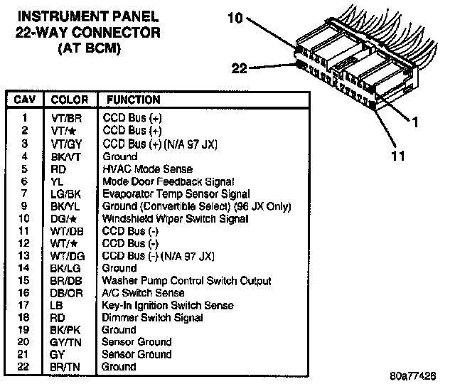 Instrument Panel 22-Way Connector (At BCM):