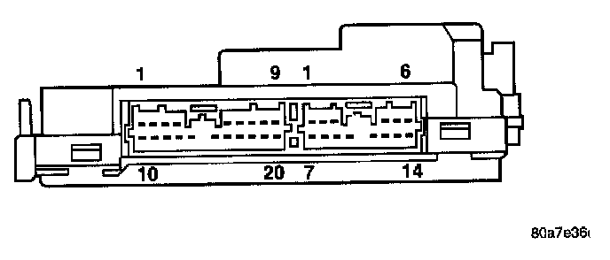 1. Using a voltmeter, check Pins 10, 11, 12 and 13 of the BCM 20 Pin connector for a voltage pulse. Press the lock button on the transmitter. Wait for quick voltage pulse. It may be necessary to press the key fob transmitter several times. The voltage pulse only appears for milliseconds.