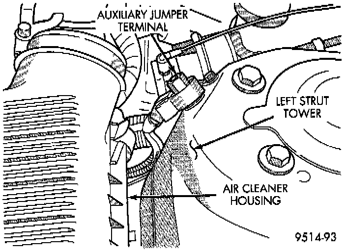 1. Disconnect negative cable from auxiliary jumper terminal Fig. 33.
