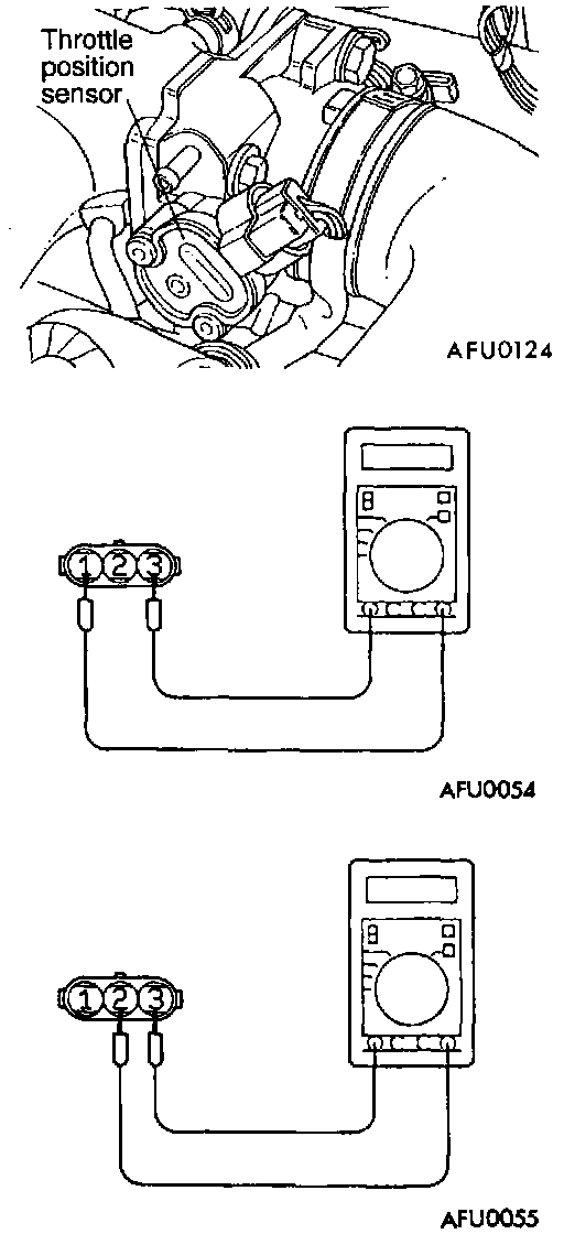 3. Measure the resistance between the throttle position sensor side connector terminal 2 and terminal 3. Open throttle valve slowly open until fully open from the idle position
