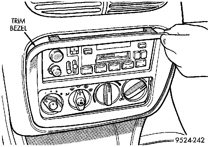 4. Pry up the cluster hood bezel a few inches to expose the cubby bin/cigar lighter bezel screws.