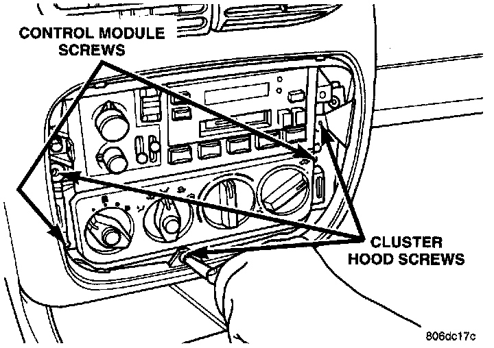 3. Remove cluster hood bezel retaining screws in the trim bezel opening.