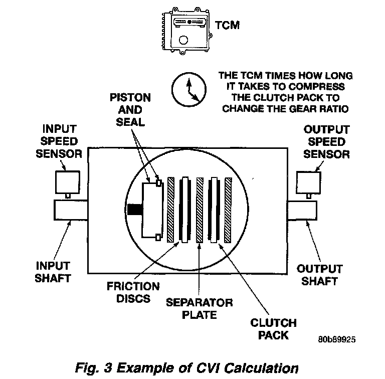 By comparing the two inputs, the TCM can determine transaxle gear position. This is important to the CVI calculation because the TCM determines CVIs by monitoring how long it takes for a gear change to occur.