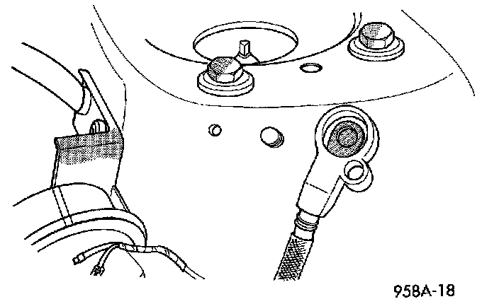 7. Reconnect the battery negative remote cable to the remote terminal on the left strut tower.