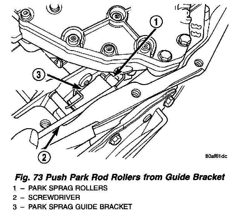 11. Remove park rod rollers from guide bracket and remove valve body from transaxle (Fig. 73) (Fig. 74).