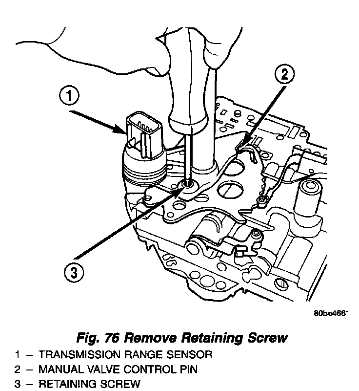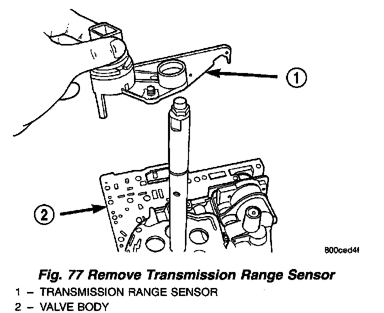 14. Slide Transmission Range Sensor up the manual shaft and remove (Fig. 77).