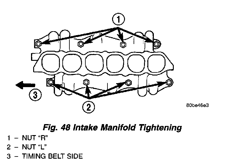 Tighten the intake manifold mounting nuts one bank after the other by using the following procedures:
