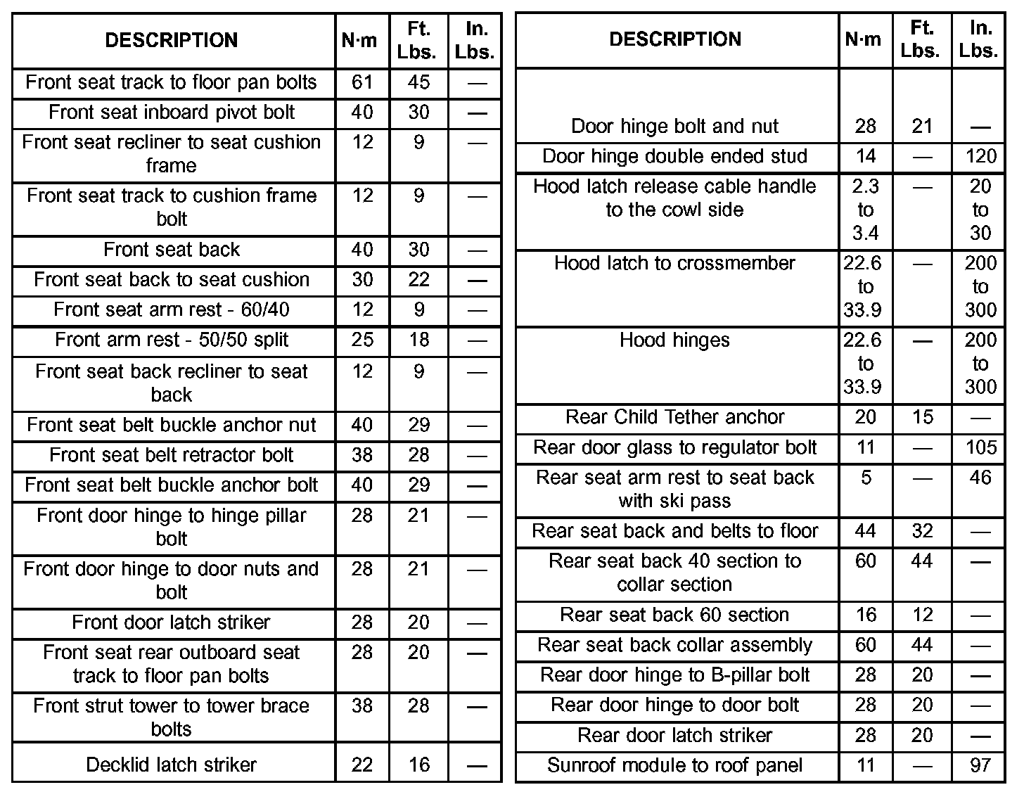 Torque Specifications: