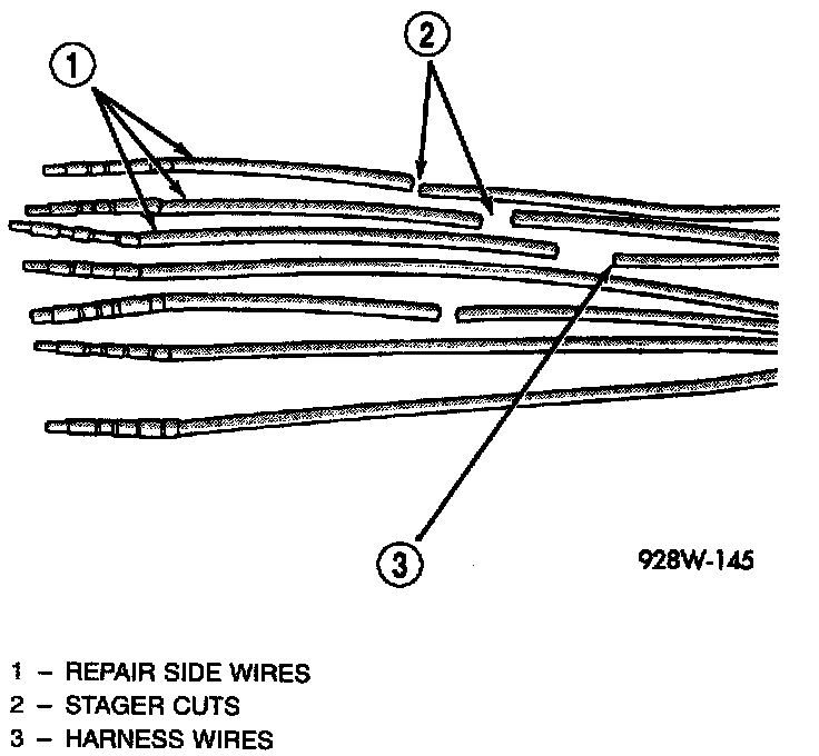 4. Stagger cut all wires on the harness side at 1/2 inch intervals.