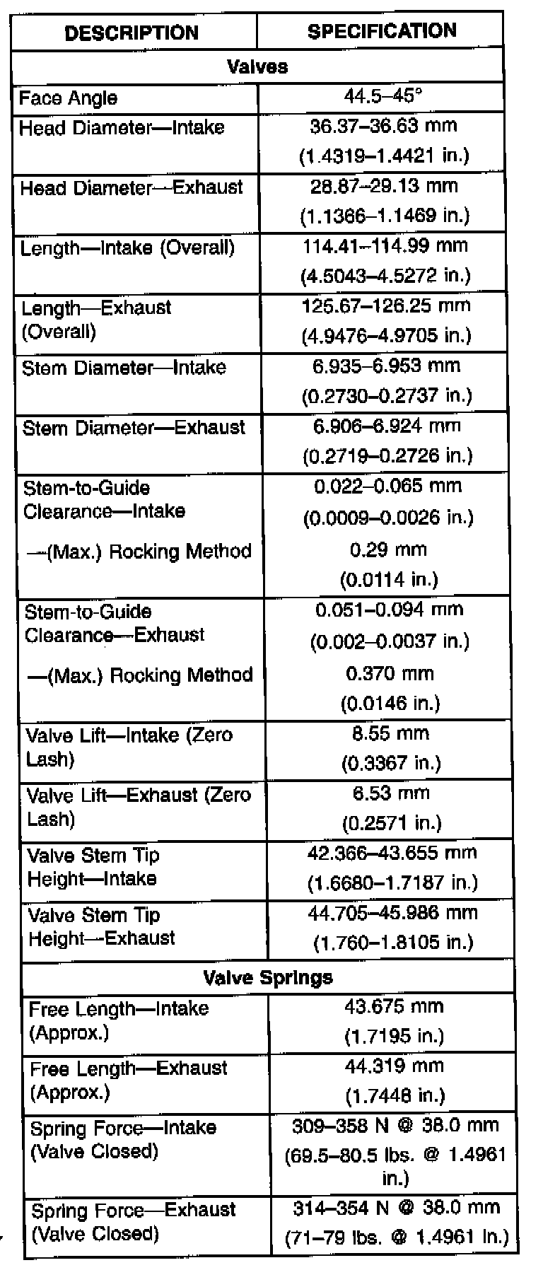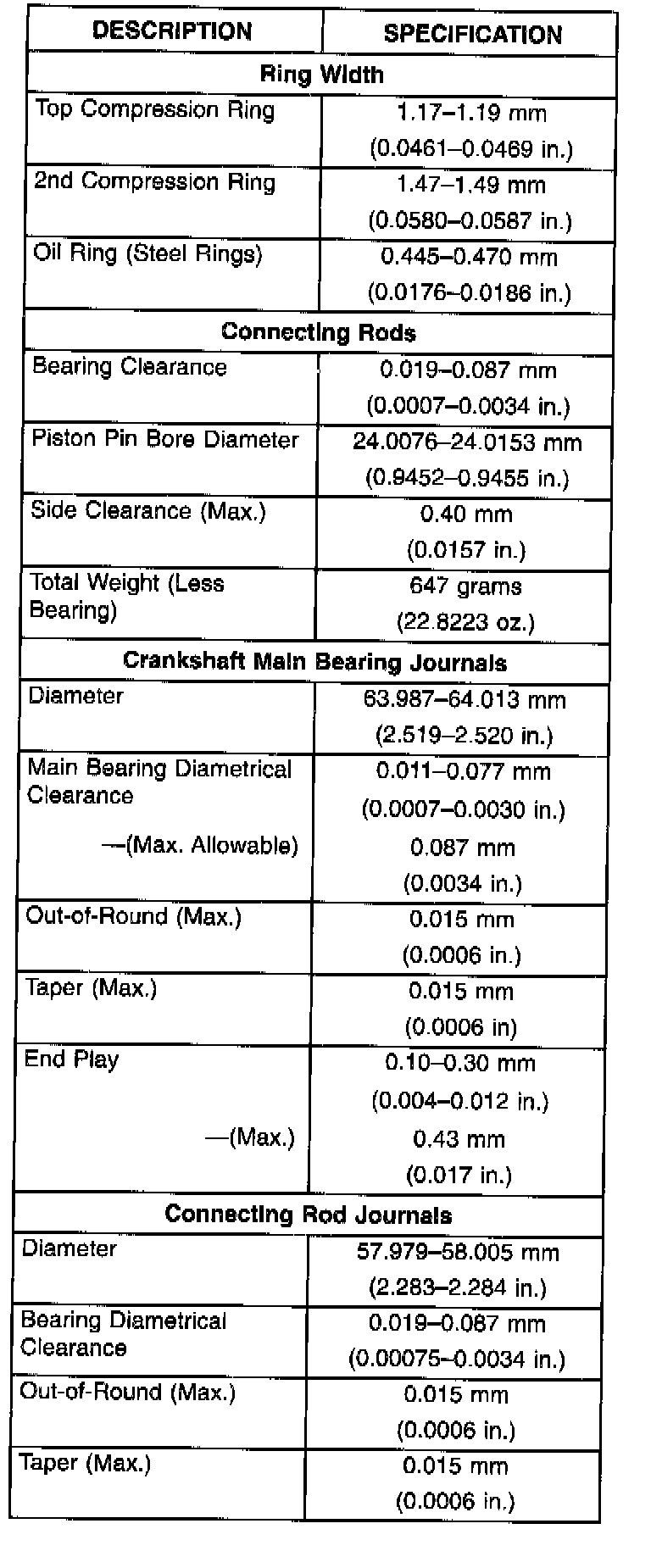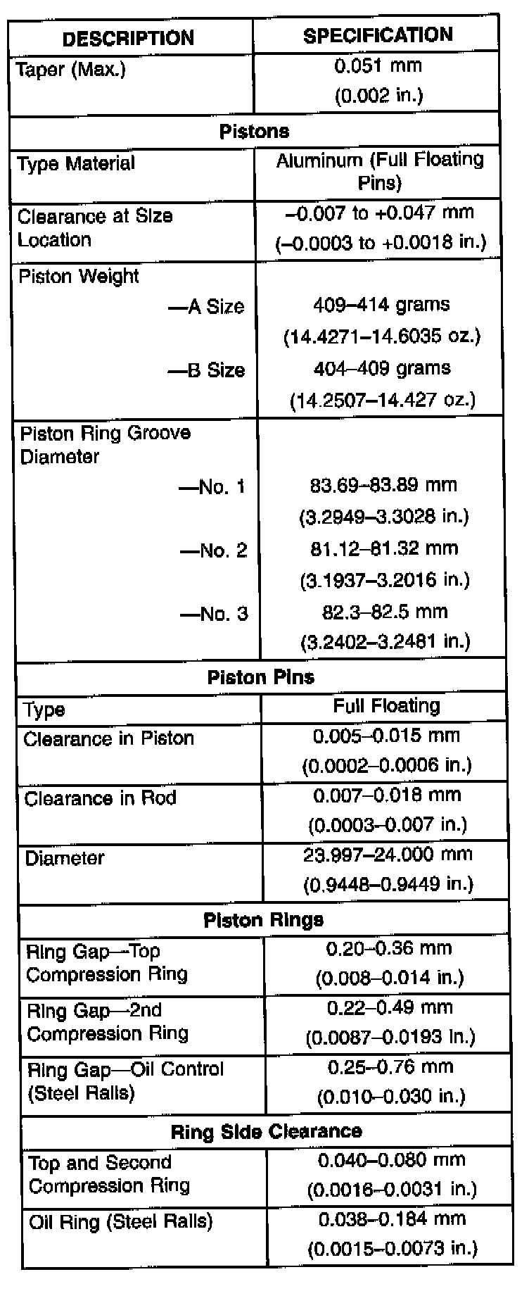 Complete Engine Specifications