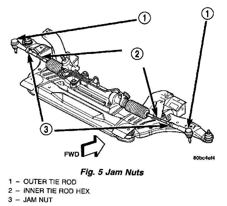 2. Tighten tie rod adjusting jam nuts to a torque I of 75 Nm (55 ft. lbs.).