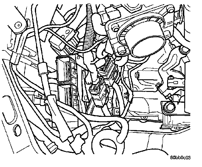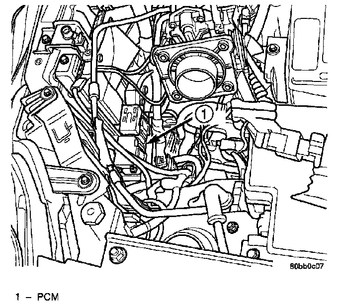 2. Install PCM and bracket to body and tighten the 2 lower bolts.