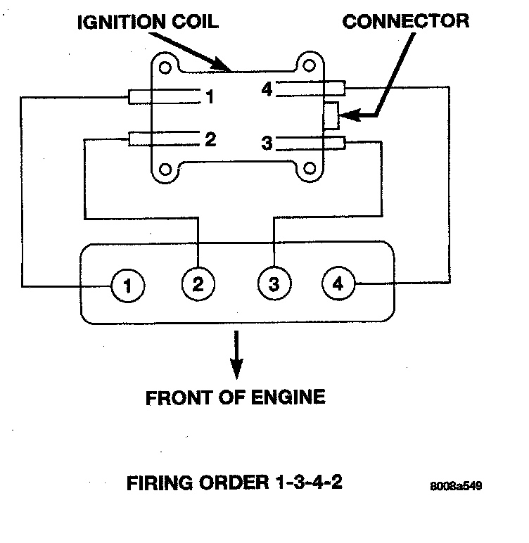 The cylinders are numbered from front of the engine to the rear. The firing order is 1-3-4-2.