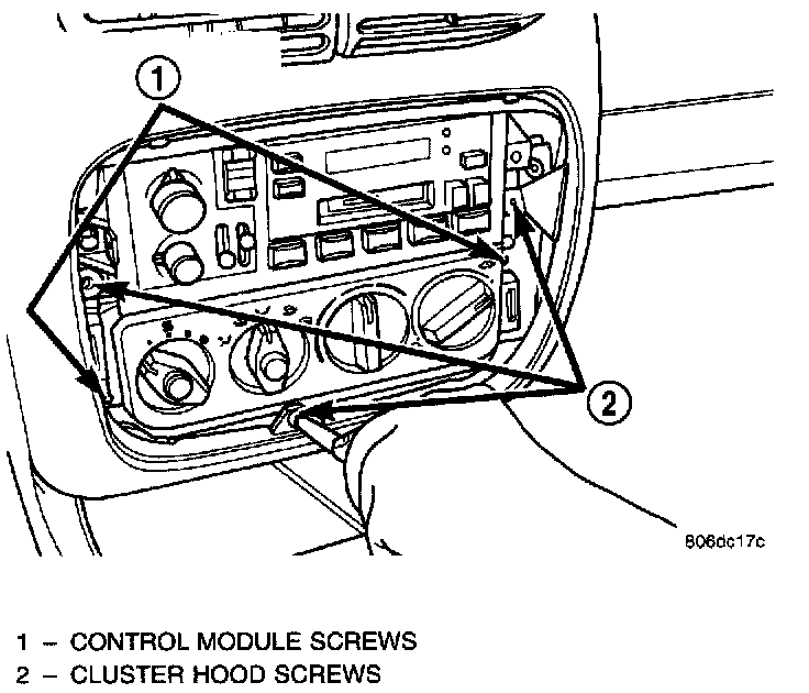 3. Remove cluster hood bezel retaining screws in the trim bezel opening.