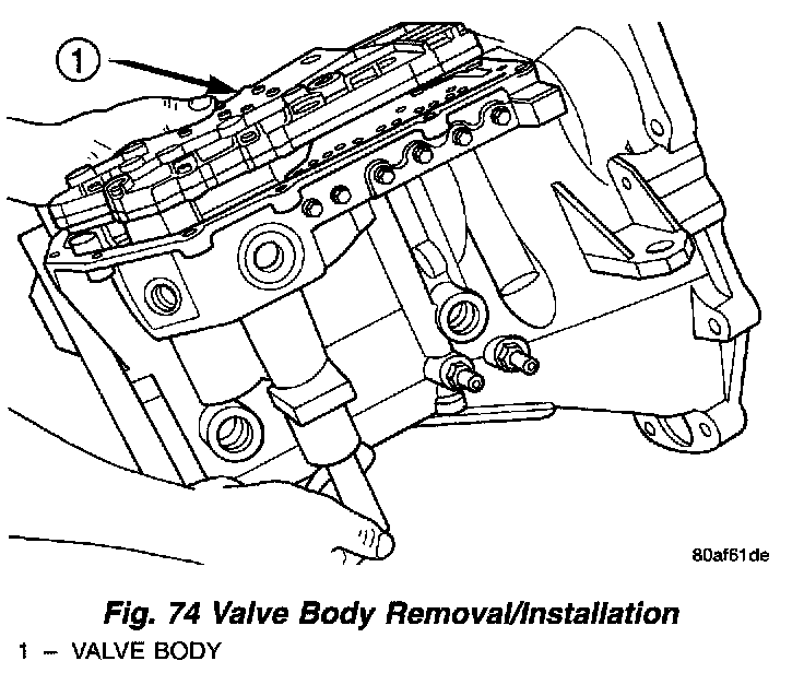 4. Guide park rod rollers into guide bracket while installing valve body to the transaxle case (Fig. 73) (Fig. 74).