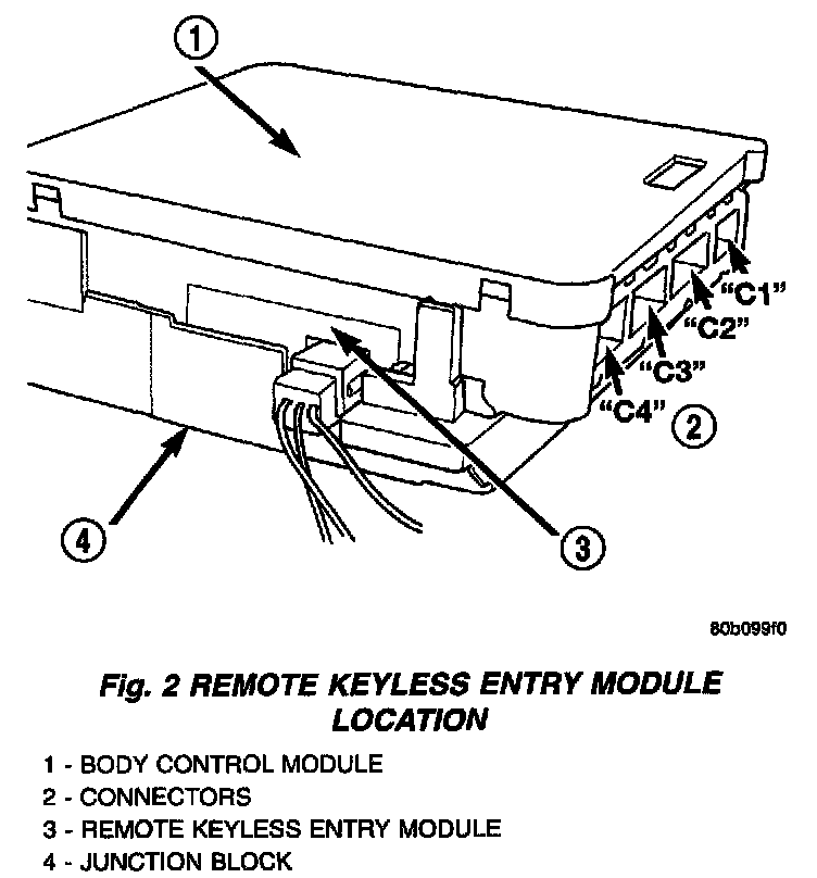 When trouble shooting problems with the Remote Keyless Entry System, always verify that the power door lock/unlock switches are functional. If the doors do not lock/unlock with the power switches, the following components should be analyzed: