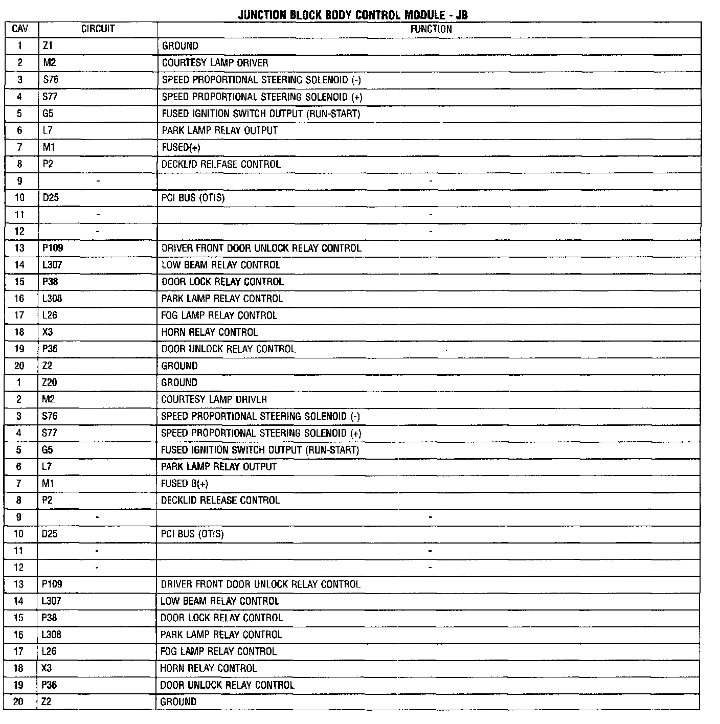 Junction Block Body Control Module - JB: