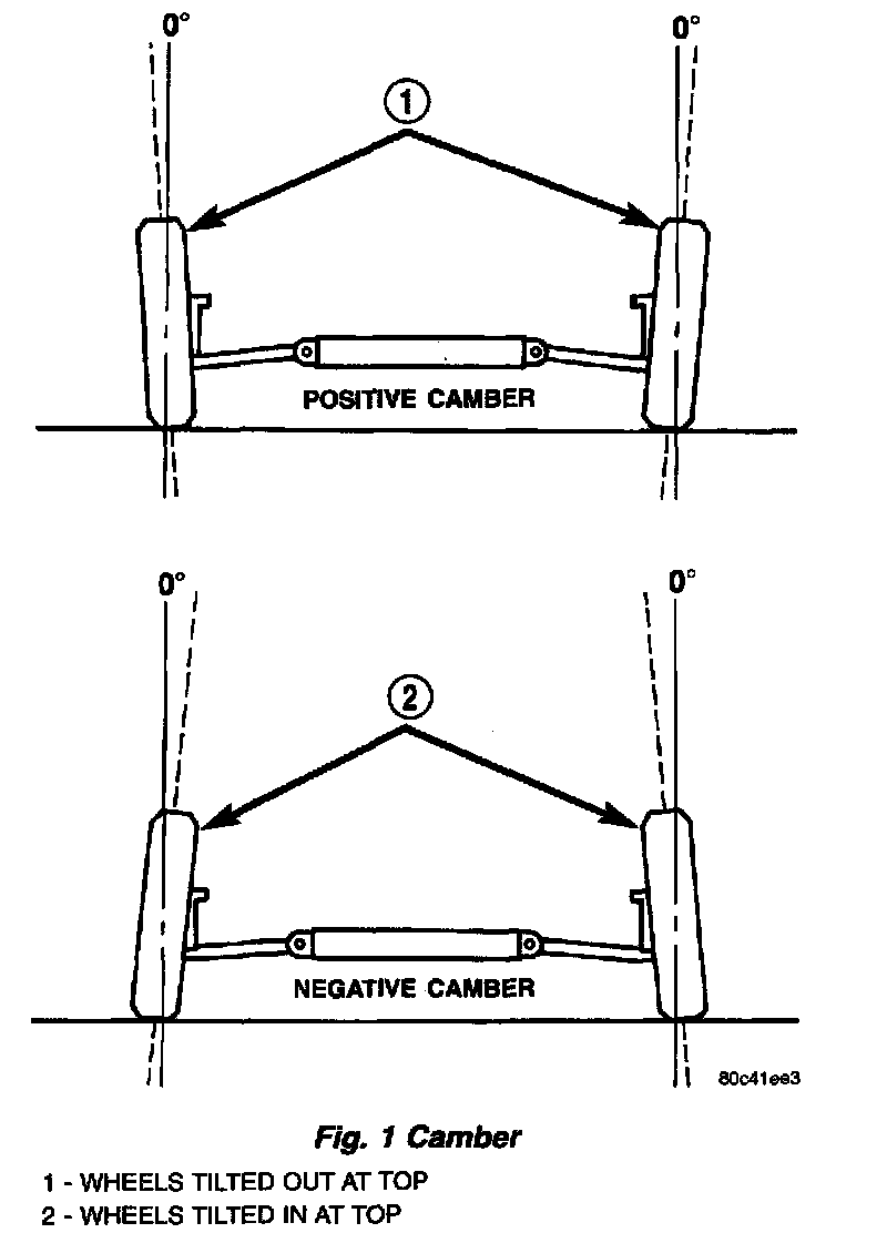 Camber is the inward or outward tilt of the top of the tire and wheel assembly. Camber is measured in degrees of angle relative to a true vertical line. Camber is a tire wearing angle.