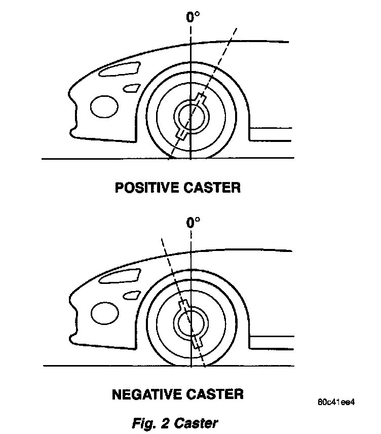 - Rearward tilt (upper ball joint trailing lower) results in a positive caster angle.
