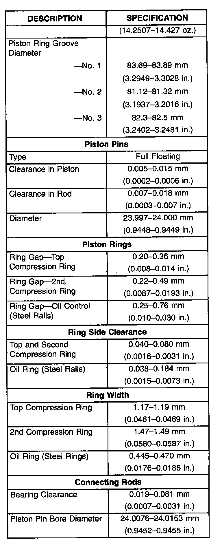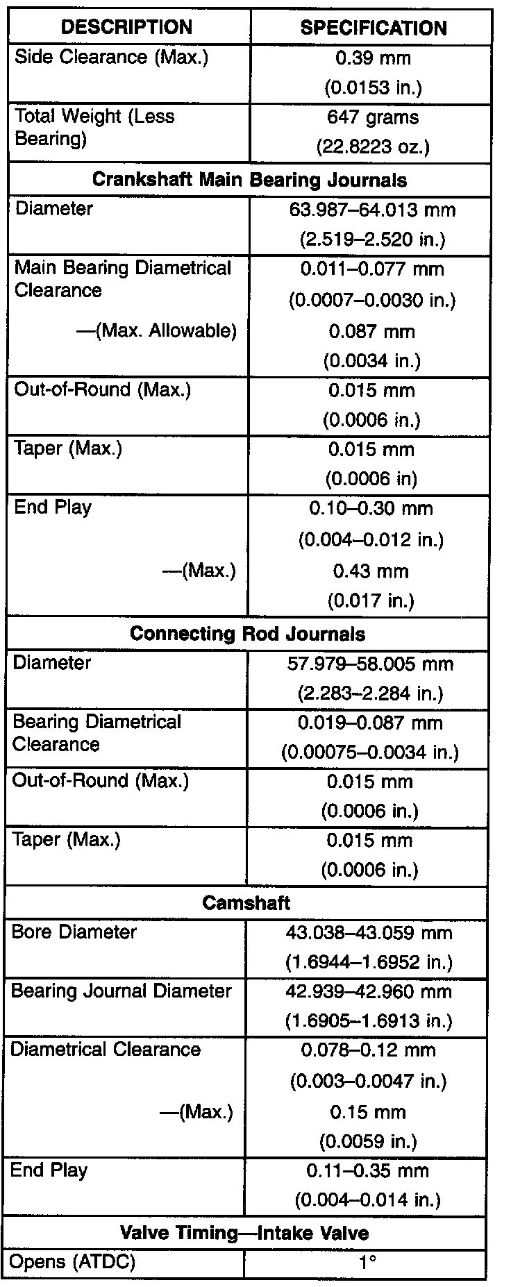 Engine Specifications