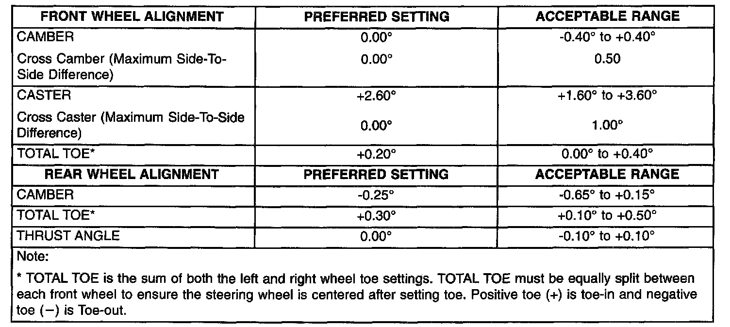 WHEEL ALIGNMENT SPECIFICATIONS
