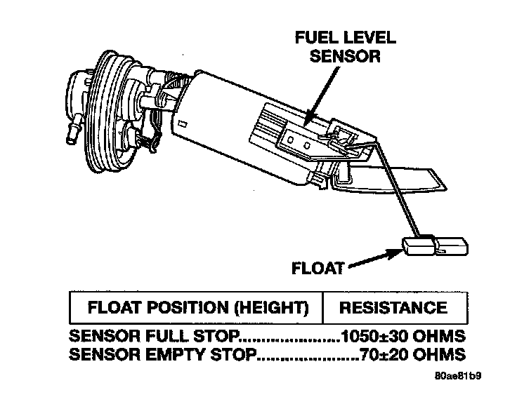 The fuel gauge sending unit (fuel level sensor) is attached to the side of the fuel pump module.