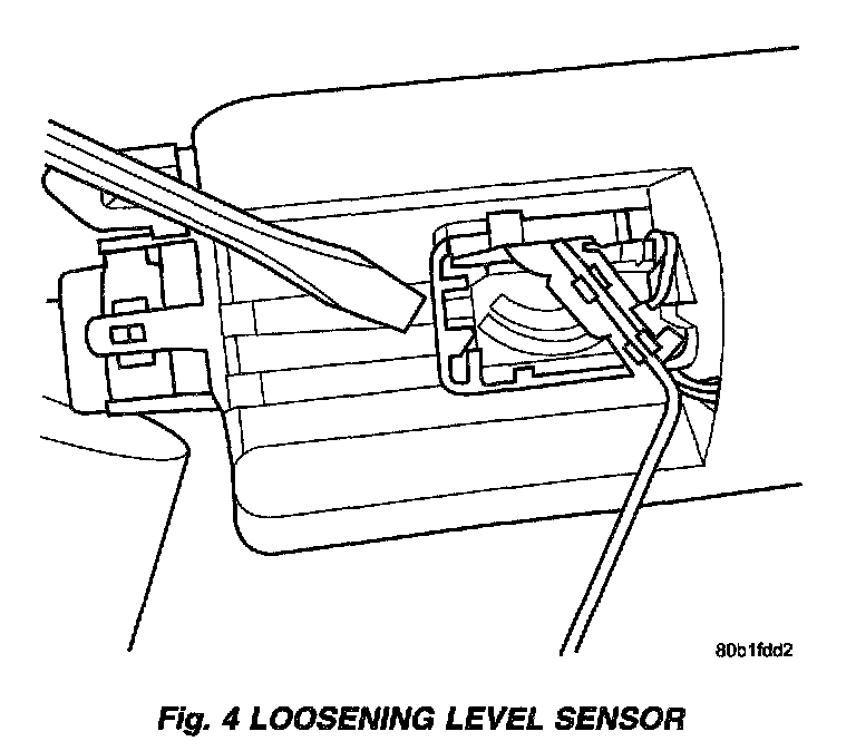 3. Using a small screwdriver lift locking finger away from terminal and push level sensor and ground terminals out of connector.