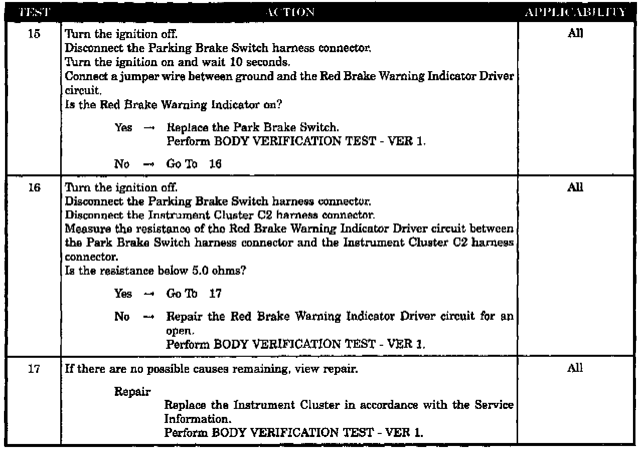 - RED BRAKE WARNING INDICATOR DRIVER CIRCUIT SHORTED TO GROUND