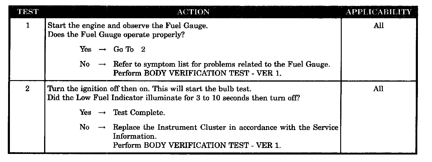 LOW FUEL INDICATOR NOT OPERATING PROPERLY
