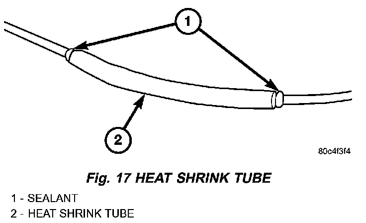 6. Center the heat shrink tubing over the joint and heat using a heat gun. Heat the joint until the tubing is tightly sealed and sealant comes out of both ends of the tubing (Fig. 17).