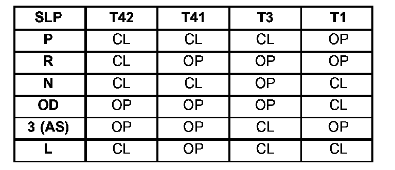 TRANSMISSION RANGE SENSOR SWITCH STATES: