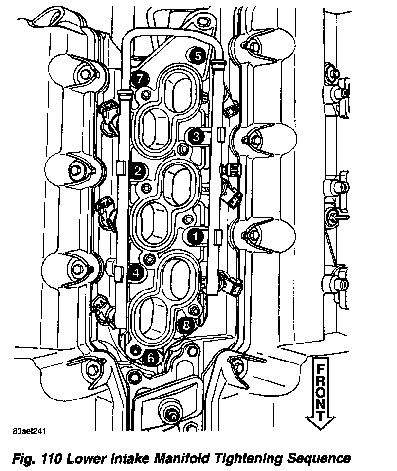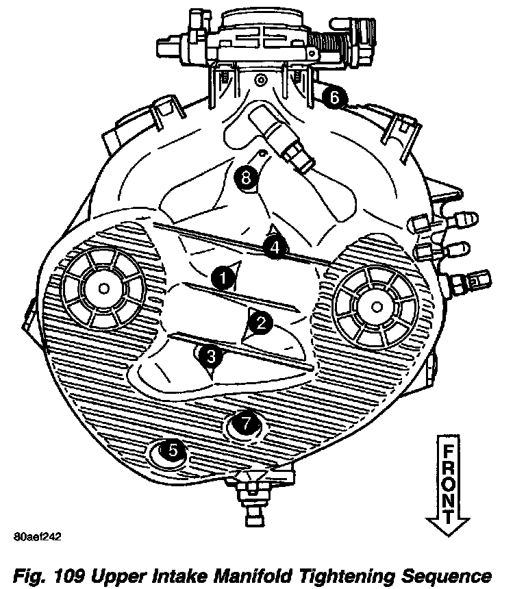 Tighten manifold attaching bolts in sequence shown. Torque to