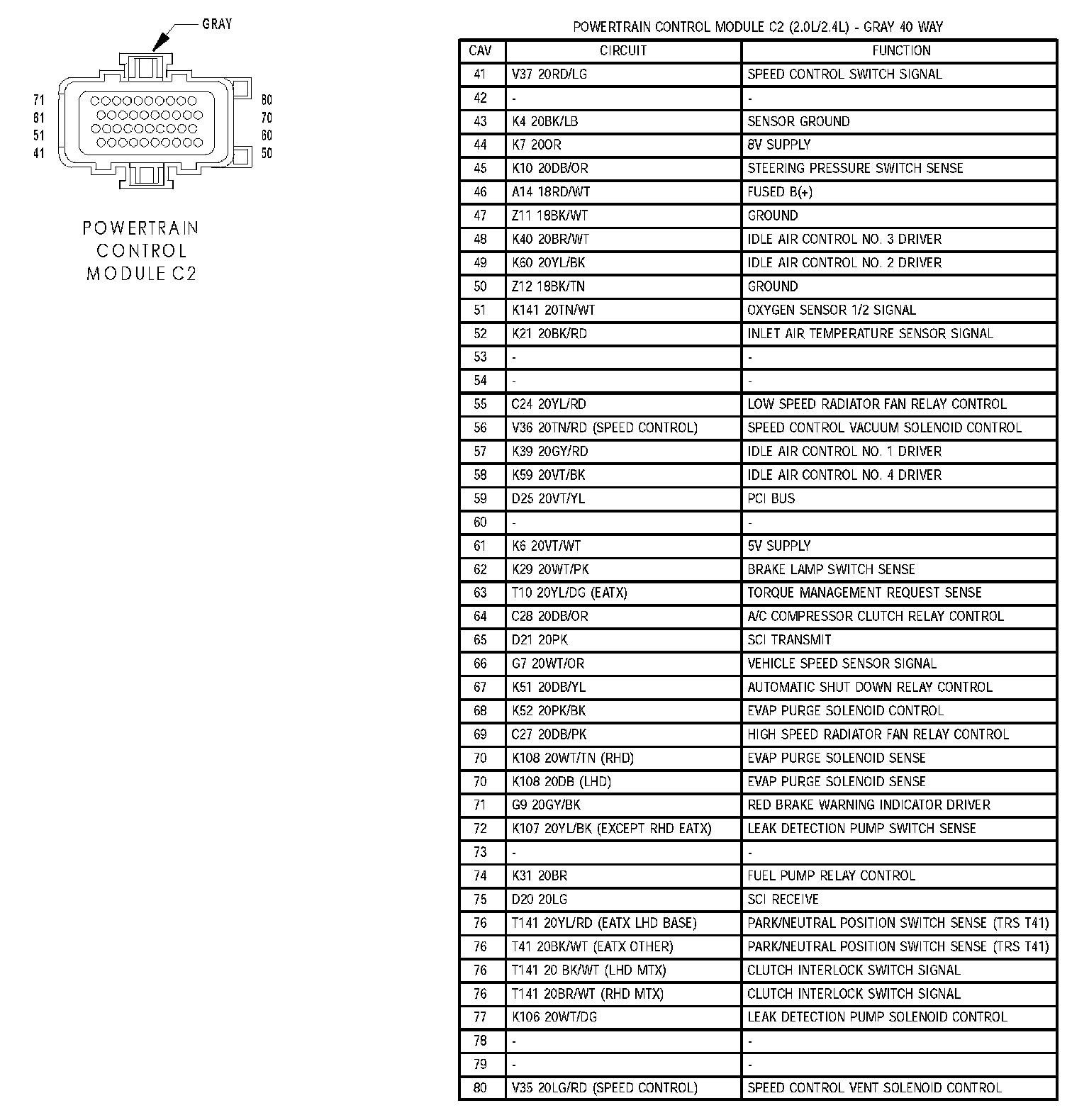 Powertrain Control Module C2 (2.0/2.4L):