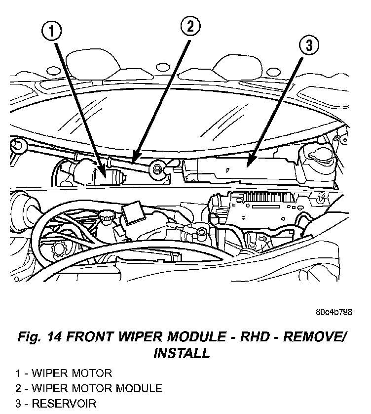 Fig. 14 Front Wiper Module - RHD - Remove/Install: