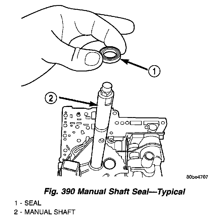 3. Install the manual shaft seal (Fig. 390).