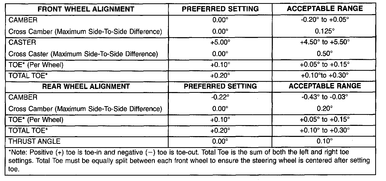 WHEEL ALIGNMENT SPECIFICATIONS