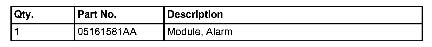 5. Position the new security alarm module, p/n 05161581AA, install and tighten the fasteners.