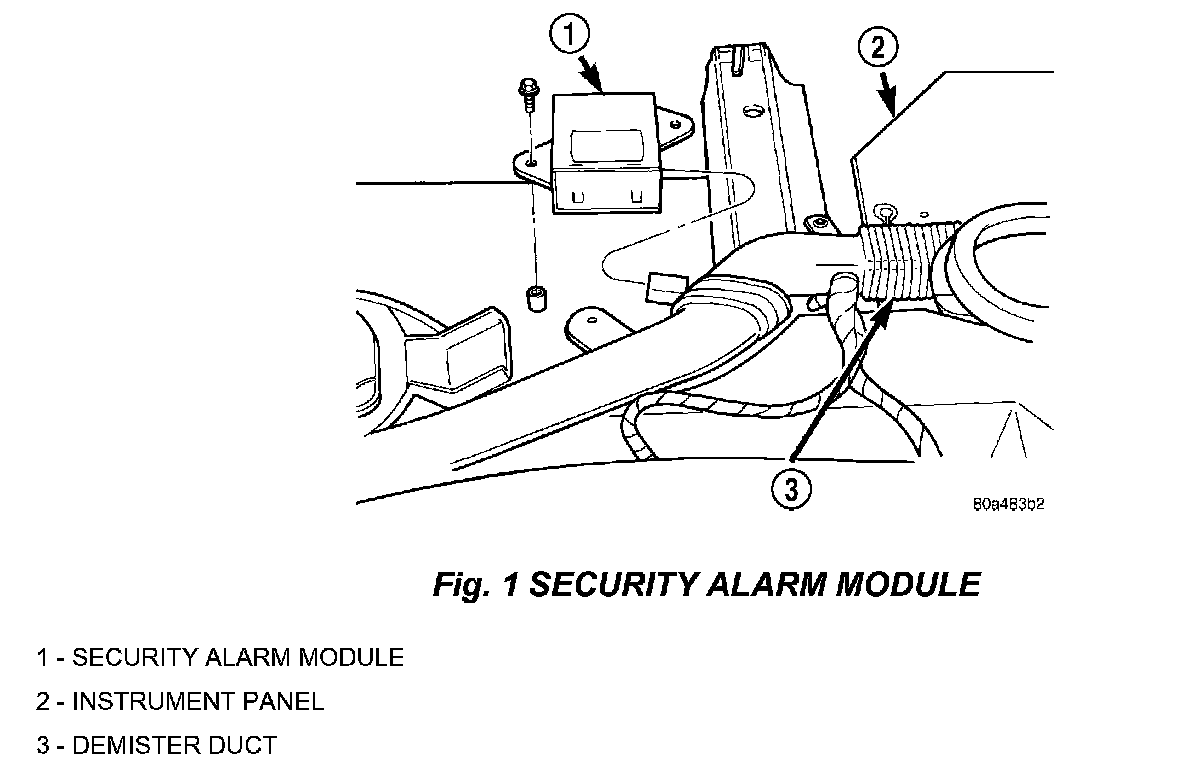 4. Disconnect the wire connectors and remove the security alarm module (Fig. 1).