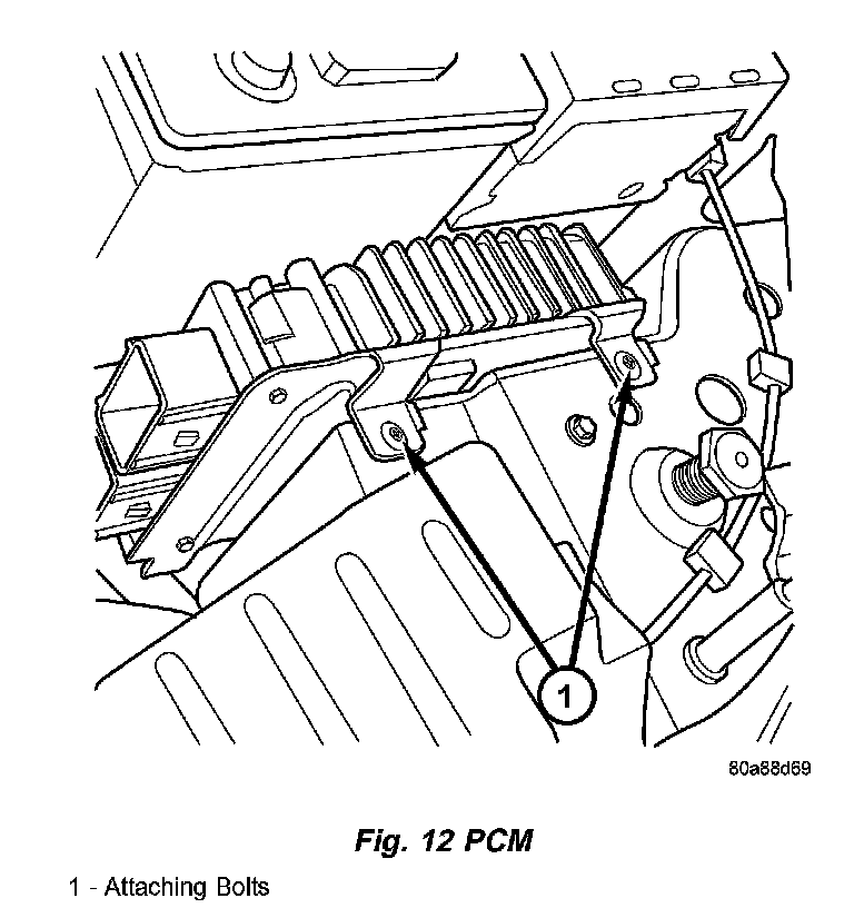 3. Install the 2 upper PCM bracket bolts. Tighten bolt.