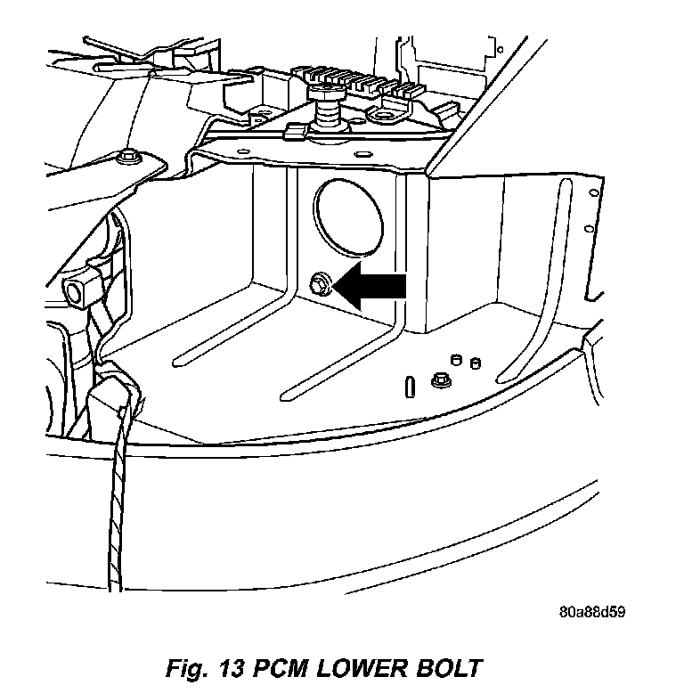 2. Install the lower PCM mounting bolt. Tighten bolt.