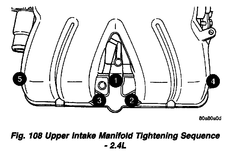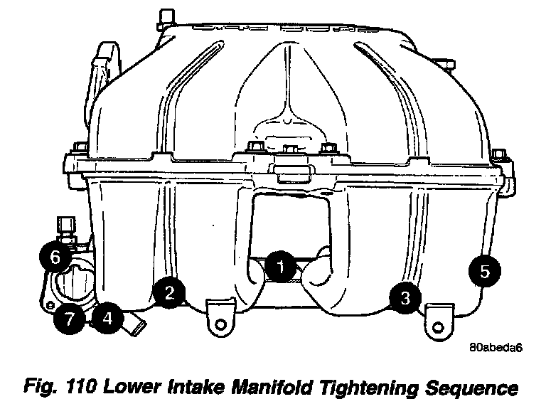 Tighten upper intake manifold fasteners to 28 Nm (250 in. lbs.) in sequence shown. Repeat this procedures until all fasteners are at specified torque.