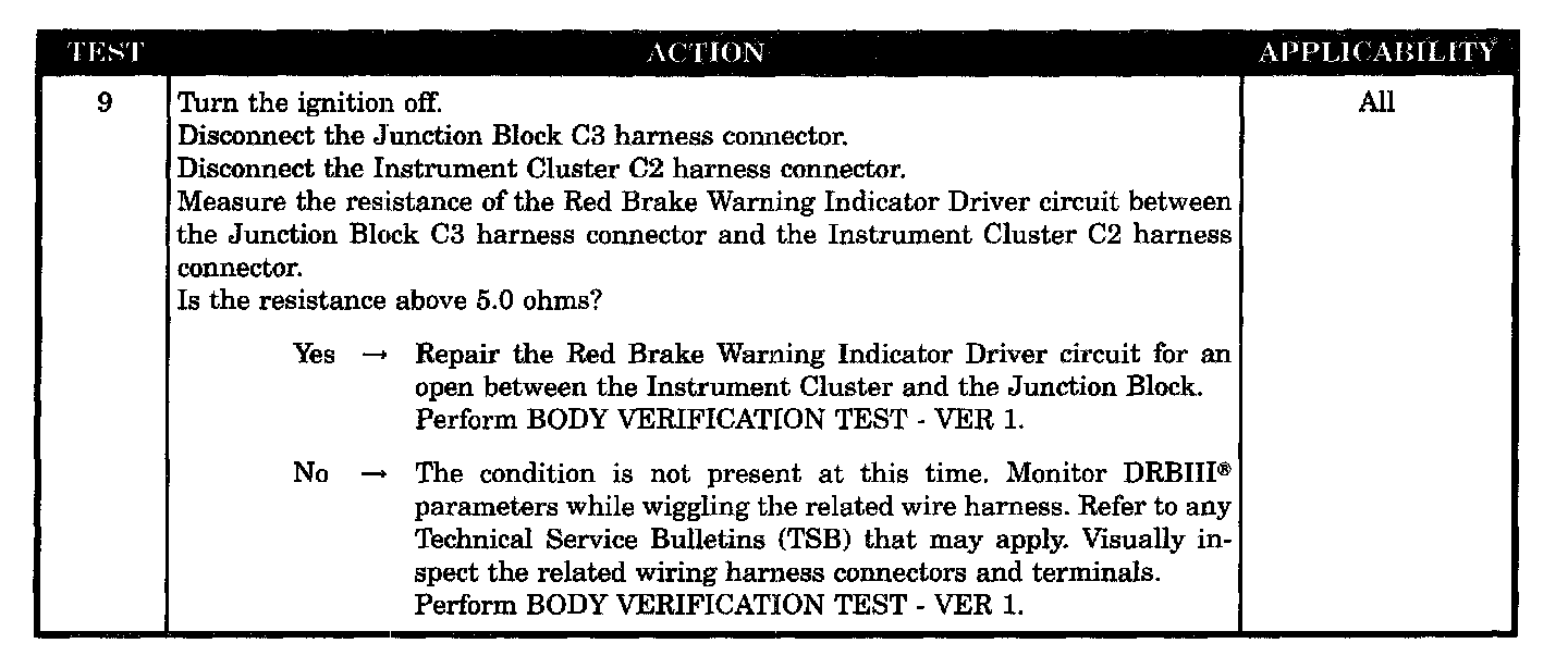 - Red brake warning indicator driver circuit open - MIC to J/block