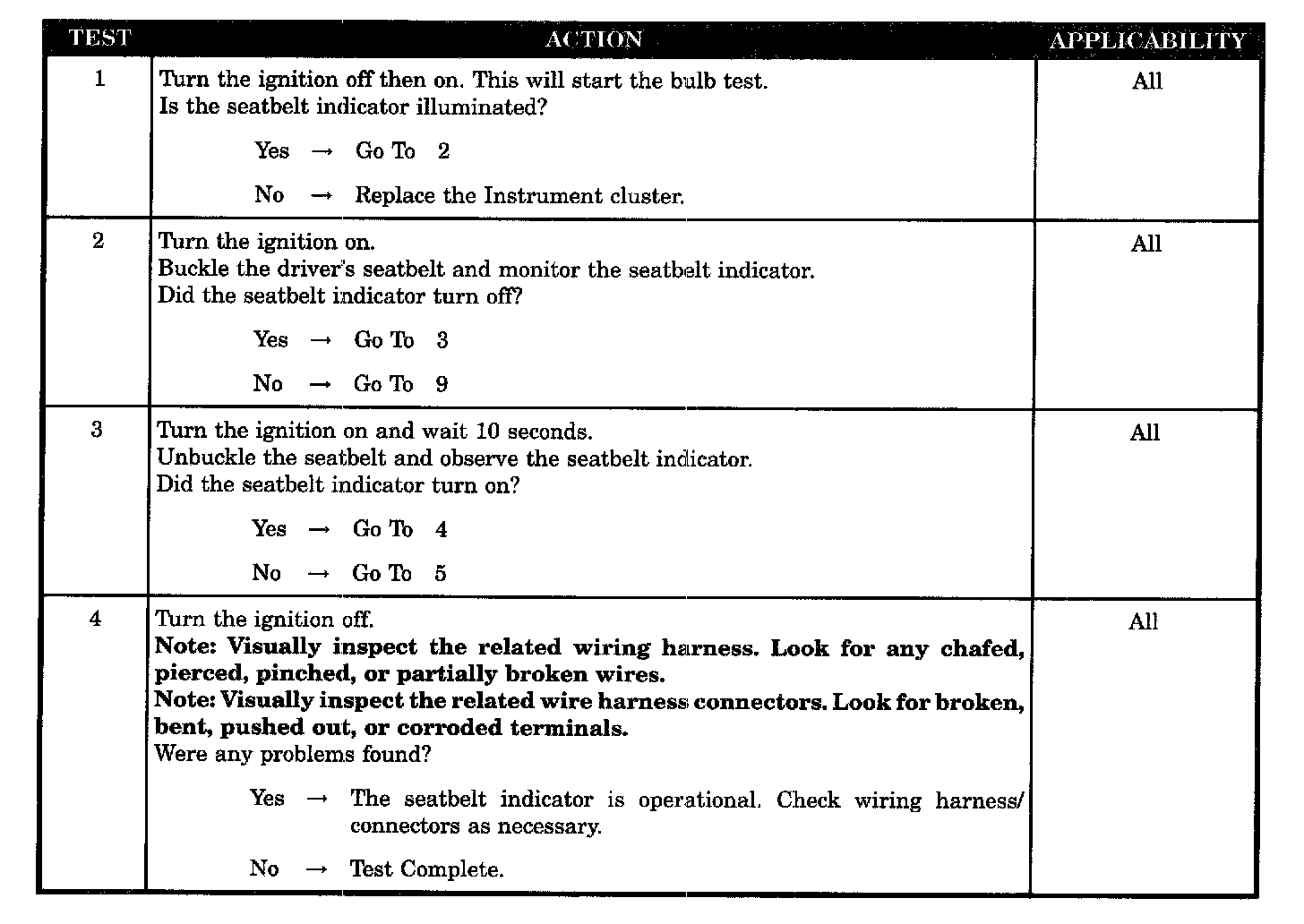 SEAT BELT INDICATOR NOT OPERATING PROPERLY