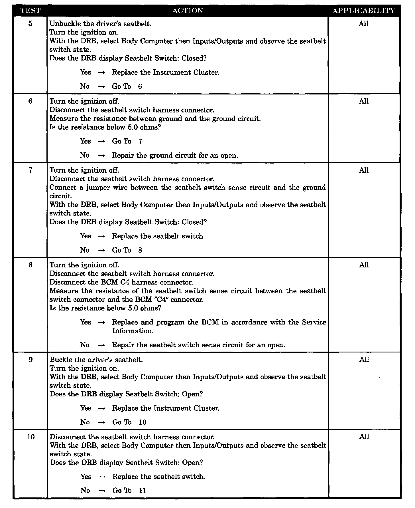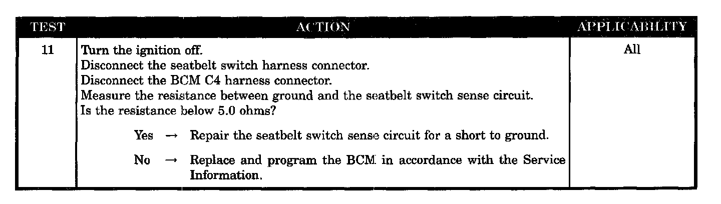 - Body control module (seatbelt switch sense circuit shorted to ground)