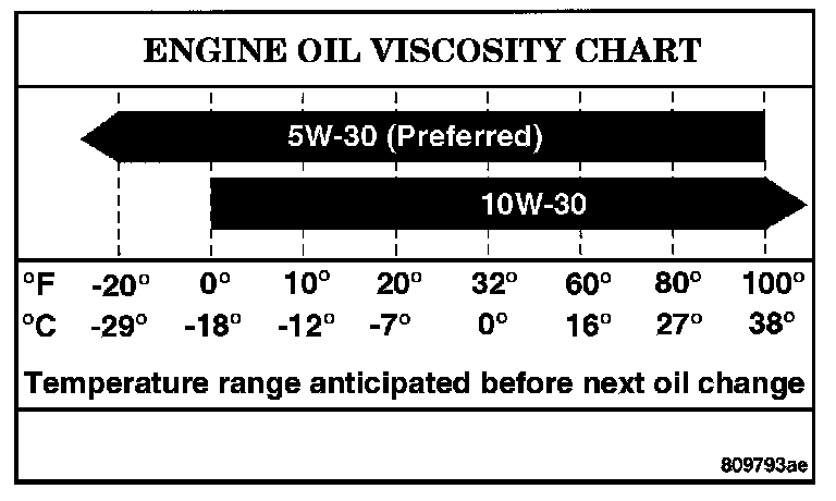The proper SAE viscosity grade of engine oil should be selected based on the following recommendation and be within the operating temperature shown in the engine oil viscosity chart.